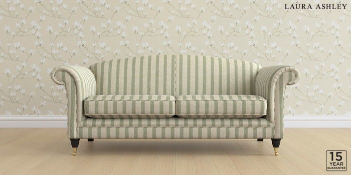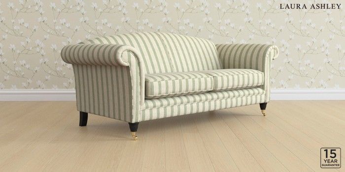 6.12.13 Buy Gloucester by Laura Ashley 3 Seater Sofa Kinsham Stripe Hedgerow Green Low Brass Castor - Black from the Next UK online shop Click here to use our accessible website