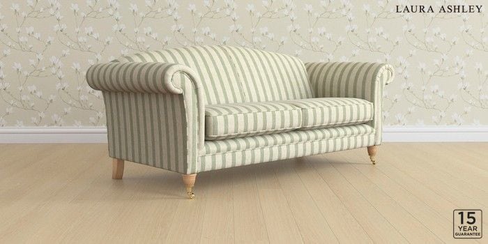 6.12.13 Buy Gloucester by Laura Ashley 3 Seater Sofa Kinsham Stripe Hedgerow Green Low Brass Castor - Light Oak from the Next UK online shop Click here to use our accessible website