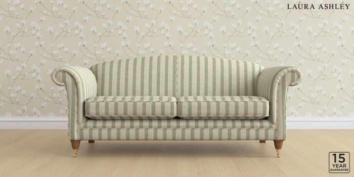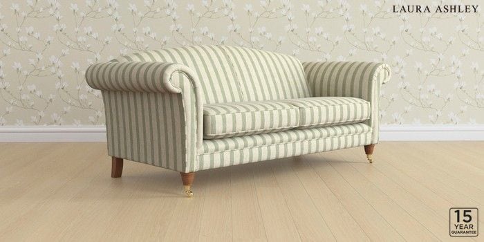 6.12.13 Buy Gloucester by Laura Ashley 3 Seater Sofa Kinsham Stripe Hedgerow Green Low Brass Castor - Teak from the Next UK online shop Click here to use our accessible website