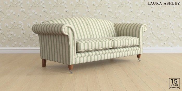 6.12.13 Buy Gloucester by Laura Ashley 3 Seater Sofa Kinsham Stripe Hedgerow Green Low Chrome Castor - Teak from the Next UK online shop Click here to use our accessible website