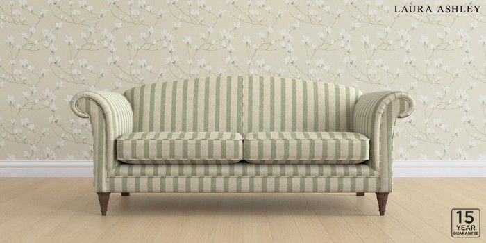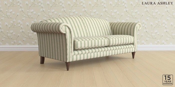 6.12.13 Buy Gloucester by Laura Ashley 3 Seater Sofa Kinsham Stripe Hedgerow Green Low Turned - Chestnut from the Next UK online shop Click here to use our accessible website
