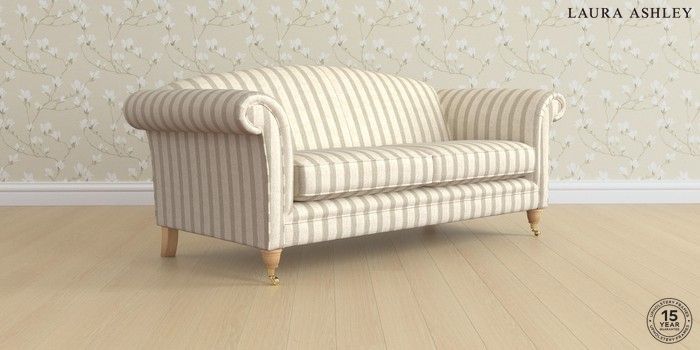 6.12.1 Buy Gloucester by Laura Ashley 3 Seater Sofa Kinsham Stripe Natural Low Brass Castor - Light Oak from the Next UK online shop Click here to use our accessible website