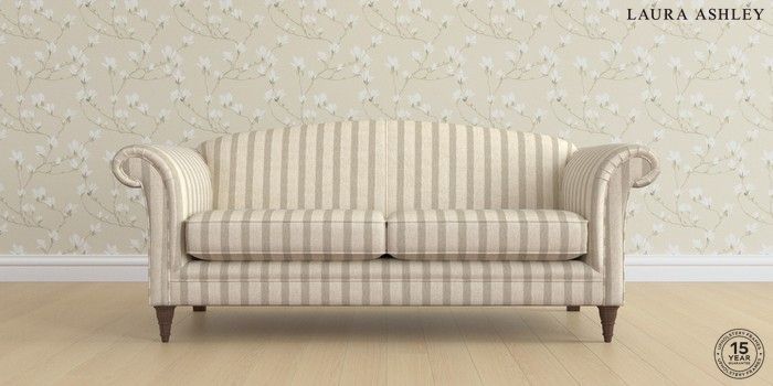 6.12.1 Buy Gloucester by Laura Ashley 3 Seater Sofa Kinsham Stripe Natural Low Turned - Chestnut from the Next UK online shop Click here to use our accessible website