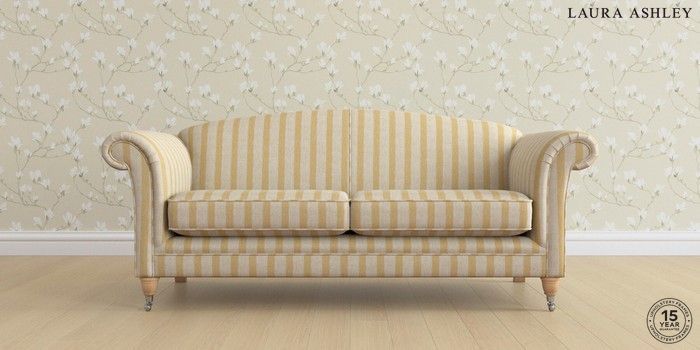 7.0.3 Buy Gloucester by Laura Ashley 3 Seater Sofa Kinsham Stripe Ochre Yellow Low Chrome Castor - Light Oak from the Next UK online shop Click here to use our accessible website