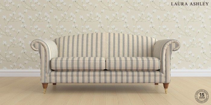 6.12.1 Buy Gloucester by Laura Ashley 3 Seater Sofa Kinsham Stripe Seaspray Blue Low Brass Castor - Teak from the Next UK online shop Click here to use our accessible website
