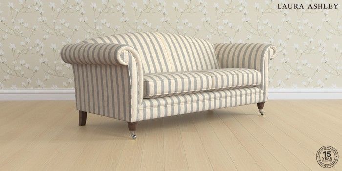 6.12.1 Buy Gloucester by Laura Ashley 3 Seater Sofa Kinsham Stripe Seaspray Blue Low Chrome Castor - Chestnut from the Next UK online shop Click here to use our accessible website