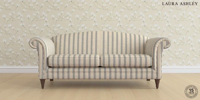 6.12.1 Buy Gloucester by Laura Ashley 3 Seater Sofa Kinsham Stripe Seaspray Blue Low Turned - Chestnut from the Next UK online shop Click here to use our accessible website