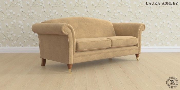 6.12.1 Buy Gloucester by Laura Ashley 3 Seater Sofa Lundar Chenille Caramel Natural Low Brass Castor - Teak from the Next UK online shop Click here to use our accessible website