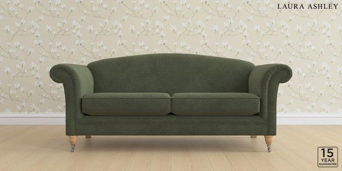 6.12.13 Buy Gloucester by Laura Ashley 3 Seater Sofa Lundar Chenille Ivy Green Low Chrome Castor - Light Oak from the Next UK online shop Click here to use our accessible website