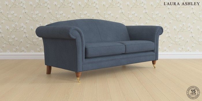 6.12.1 Buy Gloucester by Laura Ashley 3 Seater Sofa Lundar Chenille Navy Blue Low Brass Castor - Teak from the Next UK online shop Click here to use our accessible website