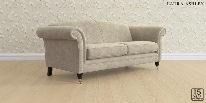 6.12.13 Buy Gloucester by Laura Ashley 3 Seater Sofa Lundar Chenille Truffle Natural Low Chrome Castor - Black from the Next UK online shop Click here to use our accessible website