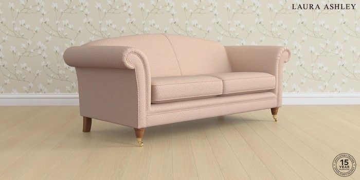 6.12.1 Buy Gloucester by Laura Ashley 3 Seater Sofa Melbreak Geo Chalk Pink Low Brass Castor - Teak from the Next UK online shop Click here to use our accessible website