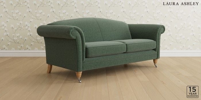 6.12.13 Buy Gloucester by Laura Ashley 3 Seater Sofa Nantmor Fern Green Low Chrome Castor - Light Oak from the Next UK online shop Click here to use our accessible website