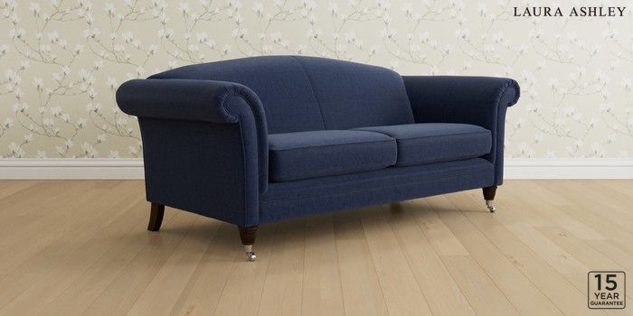 6.12.13 Buy Gloucester by Laura Ashley 3 Seater Sofa Nantmor Midnight Navy Low Chrome Castor - Chestnut from the Next UK online shop Click here to use our accessible website