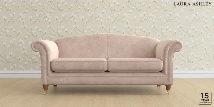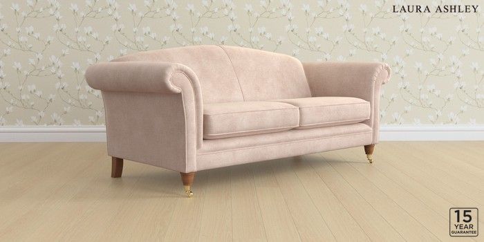 6.12.1 Buy Gloucester by Laura Ashley 3 Seater Sofa Orla Chalk Pink Low Brass Castor - Teak from the Next UK online shop Click here to use our accessible website