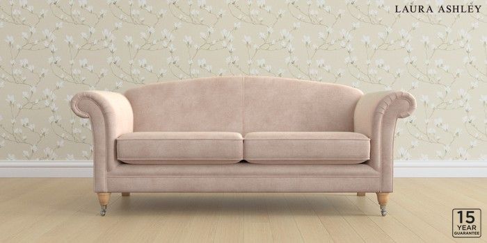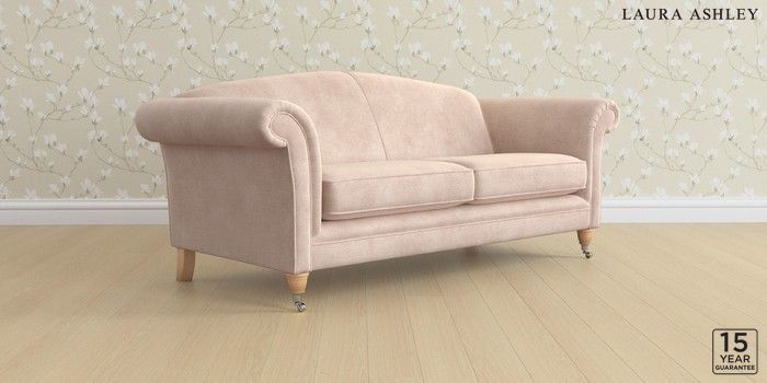 6.12.13 Buy Gloucester by Laura Ashley 3 Seater Sofa Orla Chalk Pink Low Chrome Castor - Light Oak from the Next UK online shop Click here to use our accessible website