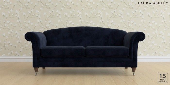 6.12.13 Buy Gloucester by Laura Ashley 3 Seater Sofa Orla Midnight Navy Low Chrome Castor - Chestnut from the Next UK online shop Click here to use our accessible website