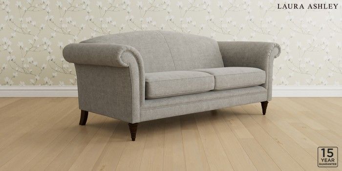 6.12.1 Buy Gloucester by Laura Ashley 3 Seater Sofa Orla Pale Steel Grey Low Turned - Chestnut from the Next UK online shop Click here to use our accessible website