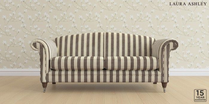 6.12.13 Buy Gloucester by Laura Ashley 3 Seater Sofa Orla Stripe Dark Truffle Natural Low Chrome Castor - Chestnut from the Next UK online shop Click here to use our accessible website