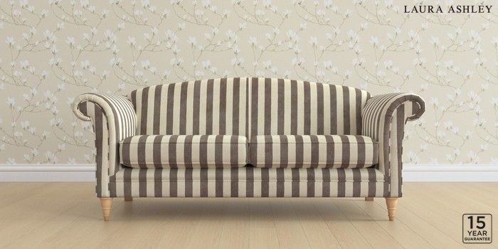 6.12.13 Buy Gloucester by Laura Ashley 3 Seater Sofa Orla Stripe Dark Truffle Natural Low Turned - Light Oak from the Next UK online shop Click here to use our accessible website