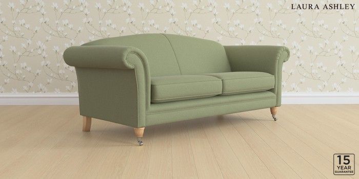 6.12.13 Buy Gloucester by Laura Ashley 3 Seater Sofa Peyton Hedgerow Green Low Chrome Castor - Light Oak from the Next UK online shop Click here to use our accessible website