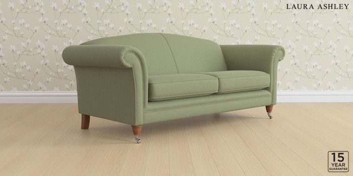 6.12.13 Buy Gloucester by Laura Ashley 3 Seater Sofa Peyton Hedgerow Green Low Chrome Castor - Teak from the Next UK online shop Click here to use our accessible website