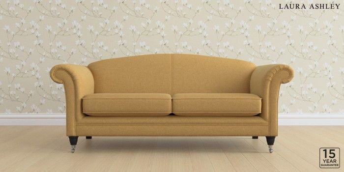 6.12.13 Buy Gloucester by Laura Ashley 3 Seater Sofa Peyton Ochre Yellow Low Chrome Castor - Black from the Next UK online shop Click here to use our accessible website