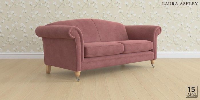 6.12.13 Buy Gloucester by Laura Ashley 3 Seater Sofa Peyton Plum Purple Low Chrome Castor - Light Oak from the Next UK online shop Click here to use our accessible website