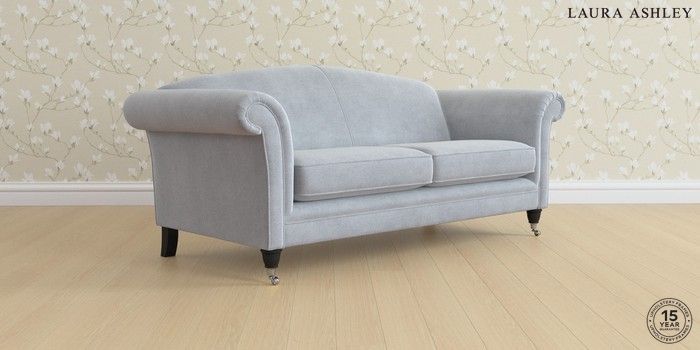 6.12.1 Buy Gloucester by Laura Ashley 3 Seater Sofa Peyton Powder Blue Low Chrome Castor - Black from the Next UK online shop Click here to use our accessible website