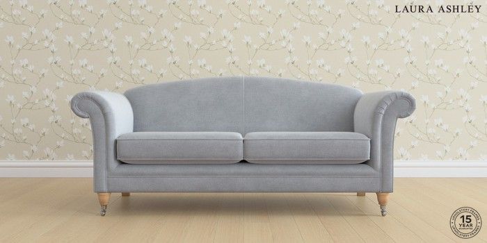 6.12.1 Buy Gloucester by Laura Ashley 3 Seater Sofa Peyton Powder Blue Low Chrome Castor - Light Oak from the Next UK online shop Click here to use our accessible website