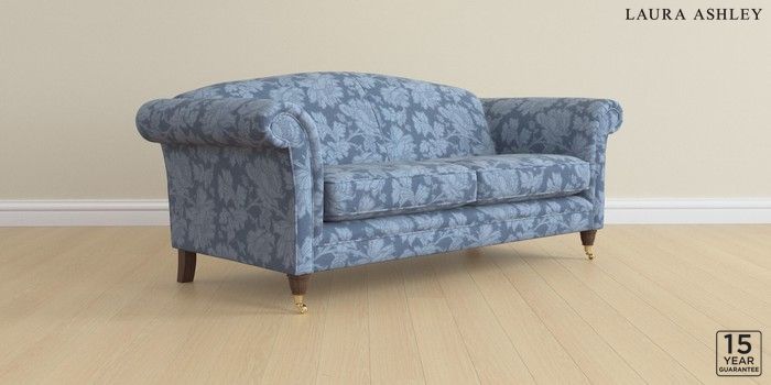 6.12.1 Buy Gloucester by Laura Ashley 3 Seater Sofa Tamara Dusky Seaspray Blue Low Brass Castor - Chestnut from the Next UK online shop Click here to use our accessible website