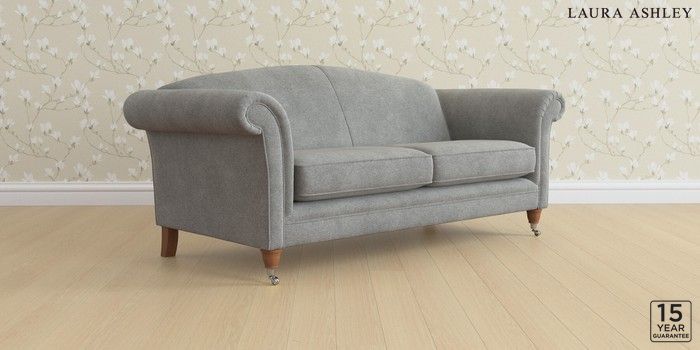 6.12.1 Buy Gloucester by Laura Ashley 3 Seater Sofa Wooton Dark Steel Grey Low Chrome Castor - Teak from the Next UK online shop Click here to use our accessible website