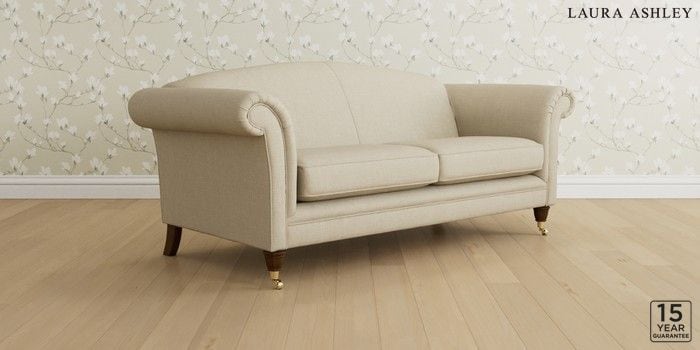 6.12.1 Buy Gloucester by Laura Ashley 3 Seater Sofa Wooton Natural Low Brass Castor - Teak from the Next UK online shop Click here to use our accessible website
