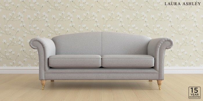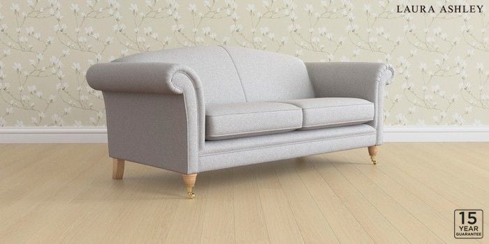 6.12.13 Buy Gloucester by Laura Ashley 3 Seater Sofa Wooton Pale Steel Grey Low Brass Castor - Light Oak from the Next UK online shop Click here to use our accessible website