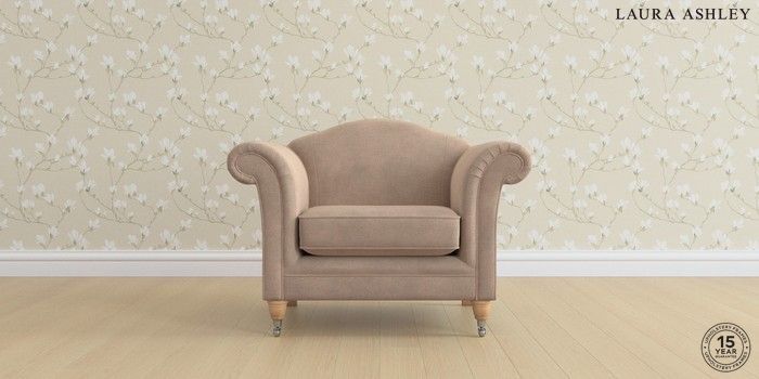 6.12.1 Buy Gloucester by Laura Ashley Armchair Ailsworth Mink Natural Low Chrome Castor - Light Oak from the Next UK online shop Click here to use our accessible website