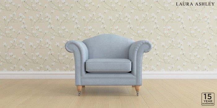 6.12.1 Buy Gloucester by Laura Ashley Armchair Ailsworth Newport Blue Low Chrome Castor - Light Oak from the Next UK online shop Click here to use our accessible website