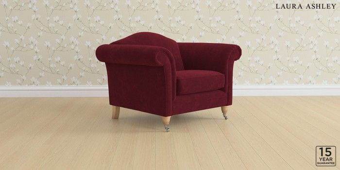 6.12.1 Buy Gloucester by Laura Ashley Armchair Alwyn Velvet Burgundy Red Low Chrome Castor - Light Oak from the Next UK online shop Click here to use our accessible website