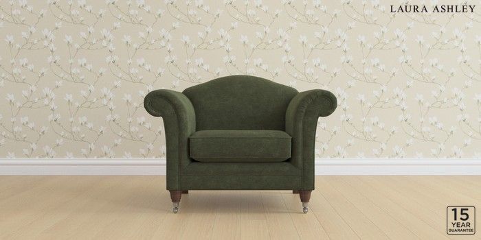 6.12.1 Buy Gloucester by Laura Ashley Armchair Alwyn Velvet Ivy Green Low Chrome Castor - Chestnut from the Next UK online shop Click here to use our accessible website