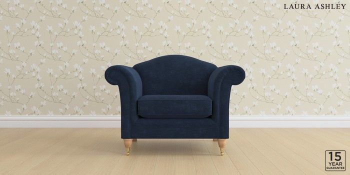 6.12.1 Buy Gloucester by Laura Ashley Armchair Alwyn Velvet Midnight Navy Low Brass Castor - Light Oak from the Next UK online shop Click here to use our accessible website