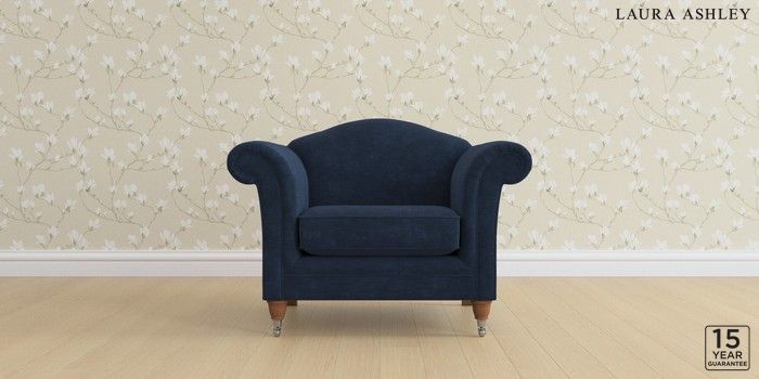 6.12.1 Buy Gloucester by Laura Ashley Armchair Alwyn Velvet Midnight Navy Low Chrome Castor - Teak from the Next UK online shop Click here to use our accessible website
