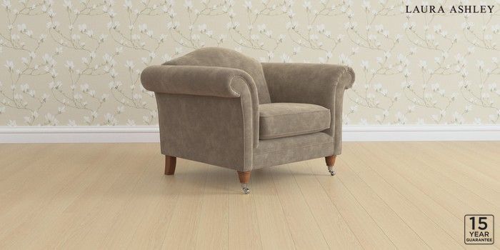 6.12.1 Buy Gloucester by Laura Ashley Armchair Alwyn Velvet Truffle Natural Low Chrome Castor - Teak from the Next UK online shop Click here to use our accessible website