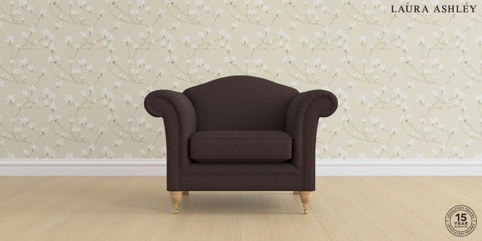 7.0.3 Buy Gloucester by Laura Ashley Armchair Bainton Chocolate Brown Low Brass Castor - Light Oak from the Next UK online shop Click here to use our accessible website
