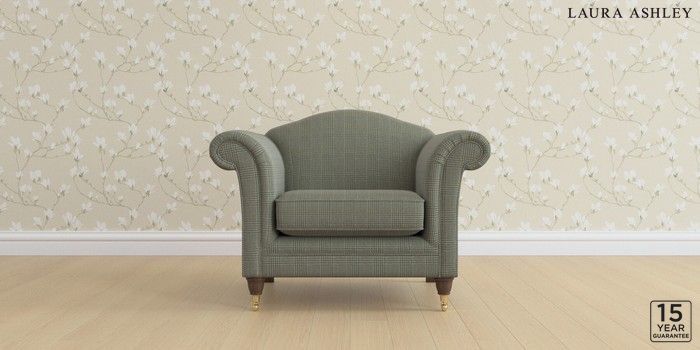 6.12.1 Buy Gloucester by Laura Ashley Armchair Birchgrove Check Olive Green Low Brass Castor - Chestnut from the Next UK online shop Click here to use our accessible website