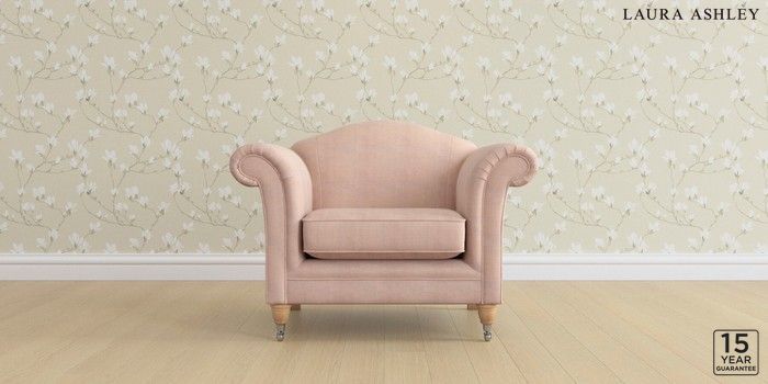 6.12.1 Buy Gloucester by Laura Ashley Armchair Edwin Chenille Blush Pink Low Chrome Castor - Light Oak from the Next UK online shop Click here to use our accessible website