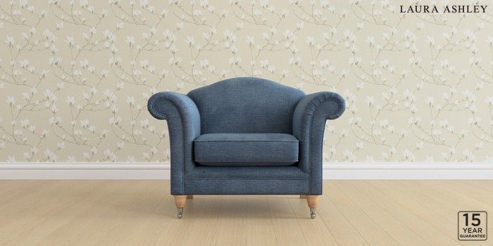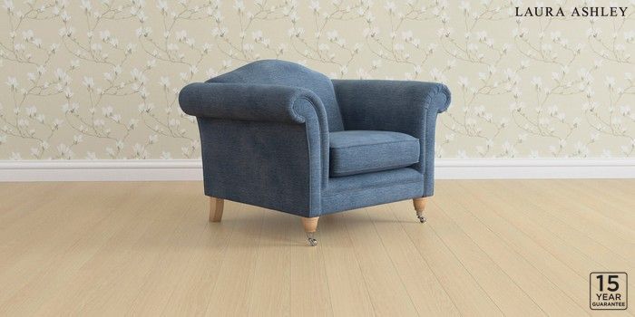 6.12.1 Buy Gloucester by Laura Ashley Armchair Edwin Chenille Seaspray Blue Low Chrome Castor - Light Oak from the Next UK online shop Click here to use our accessible website
