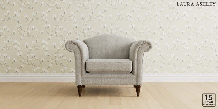 6.12.1 Buy Gloucester by Laura Ashley Armchair Edwin Chenille Silver Grey Low Turned - Chestnut from the Next UK online shop Click here to use our accessible website