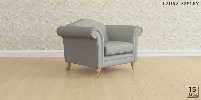 6.12.13 Buy Gloucester by Laura Ashley Armchair Edwin Herringbone Pale Steel Grey Low Brass Castor - Light Oak from the Next UK online shop Click here to use our accessible website