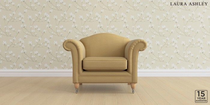 6.12.1 Buy Gloucester by Laura Ashley Armchair Kinsham Ochre Yellow Low Chrome Castor - Light Oak from the Next UK online shop Click here to use our accessible website