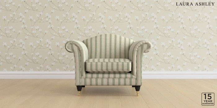 6.12.1 Buy Gloucester by Laura Ashley Armchair Kinsham Stripe Hedgerow Green Low Brass Castor - Black from the Next UK online shop Click here to use our accessible website