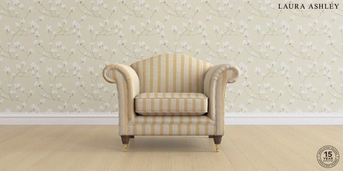 7.0.3 Buy Gloucester by Laura Ashley Armchair Kinsham Stripe Ochre Yellow Low Brass Castor - Chestnut from the Next UK online shop Click here to use our accessible website